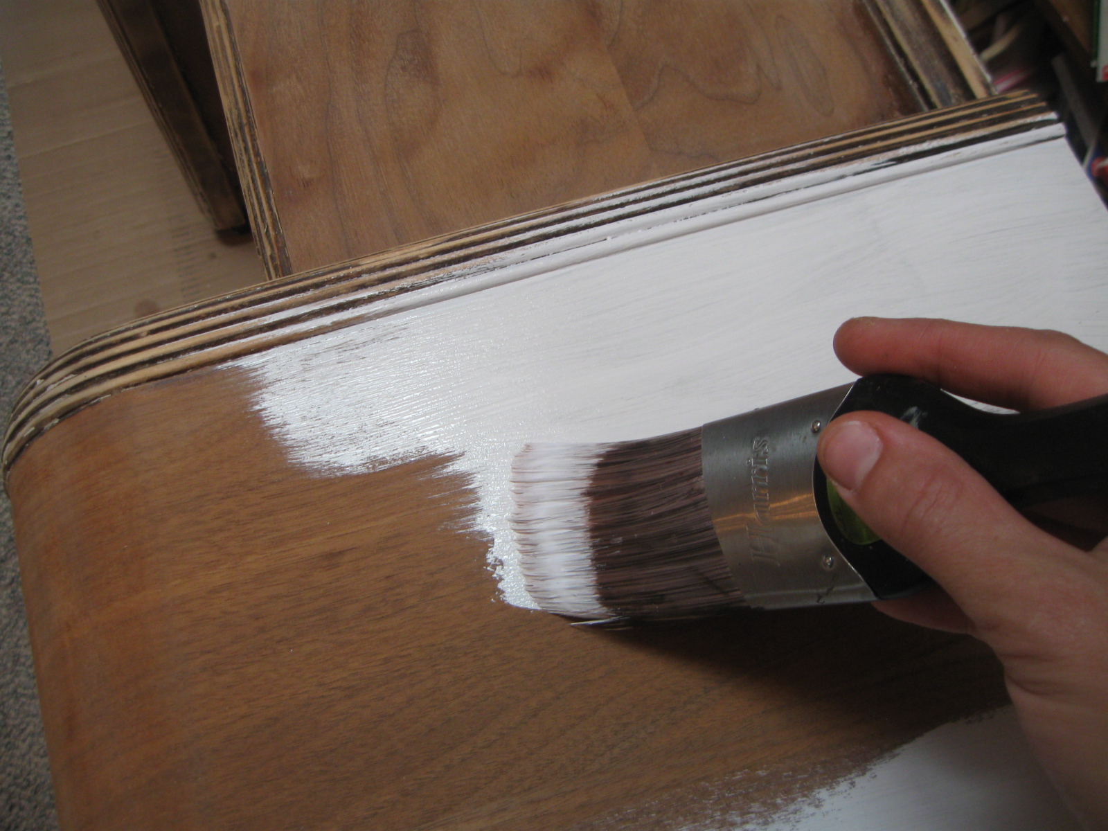 Because of the previous paint job, I had to sand the table down to bare bones, to give myself a clean start. (no drip marks for me!)